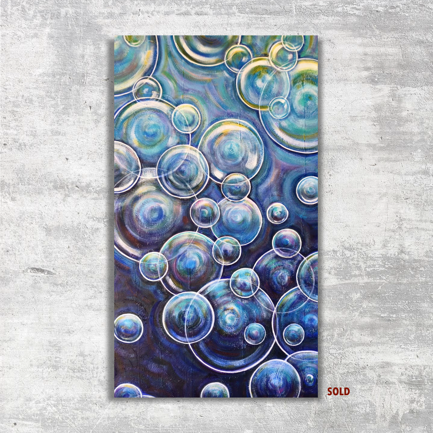 Big Blue Bubbles was painted strictly for fun. As an avid swimmer I’ve always been intrigued by bubbles. How they’re shaped, their transparency, how they reflect light.