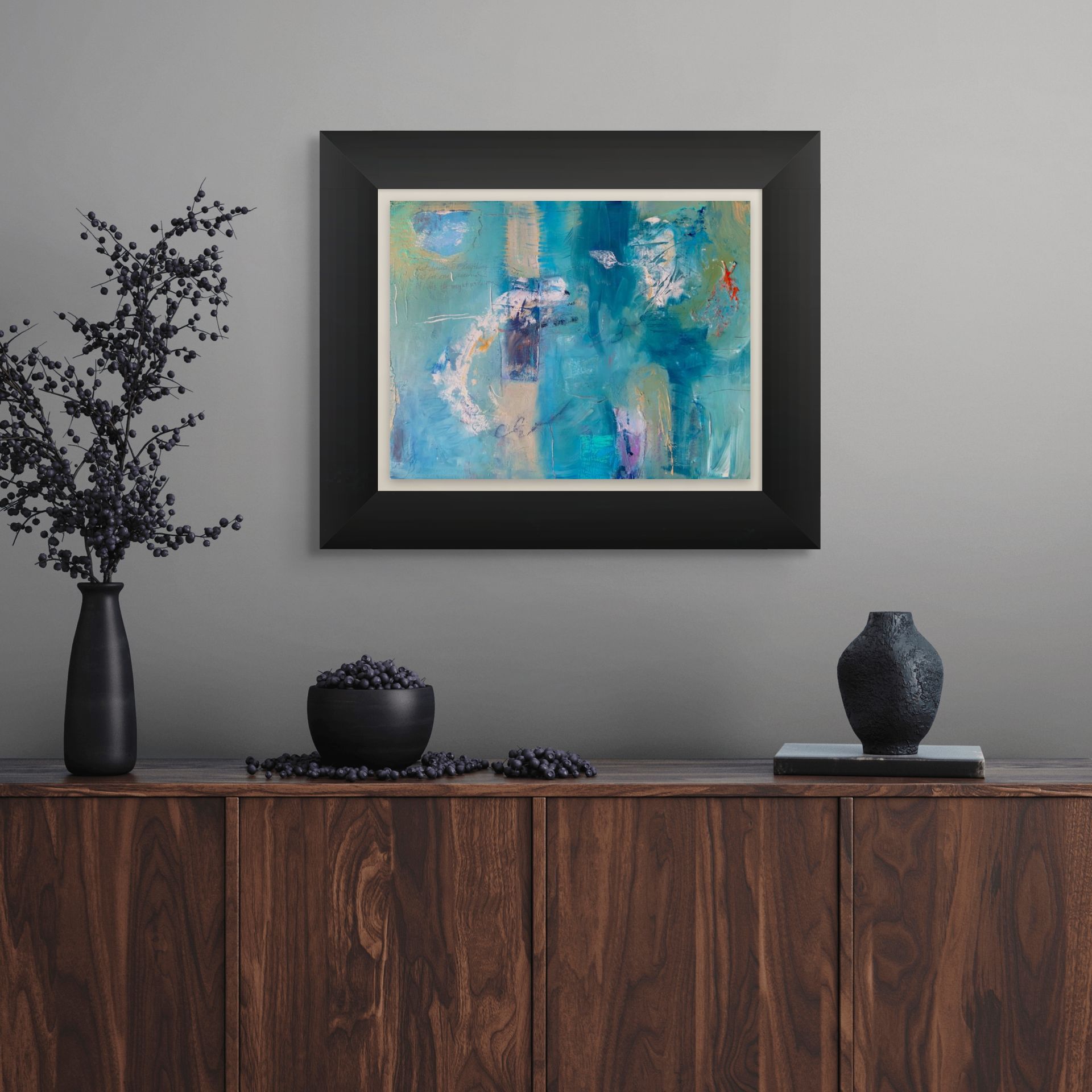 Composition With Poetry #1 comes framed as shown in the product images.