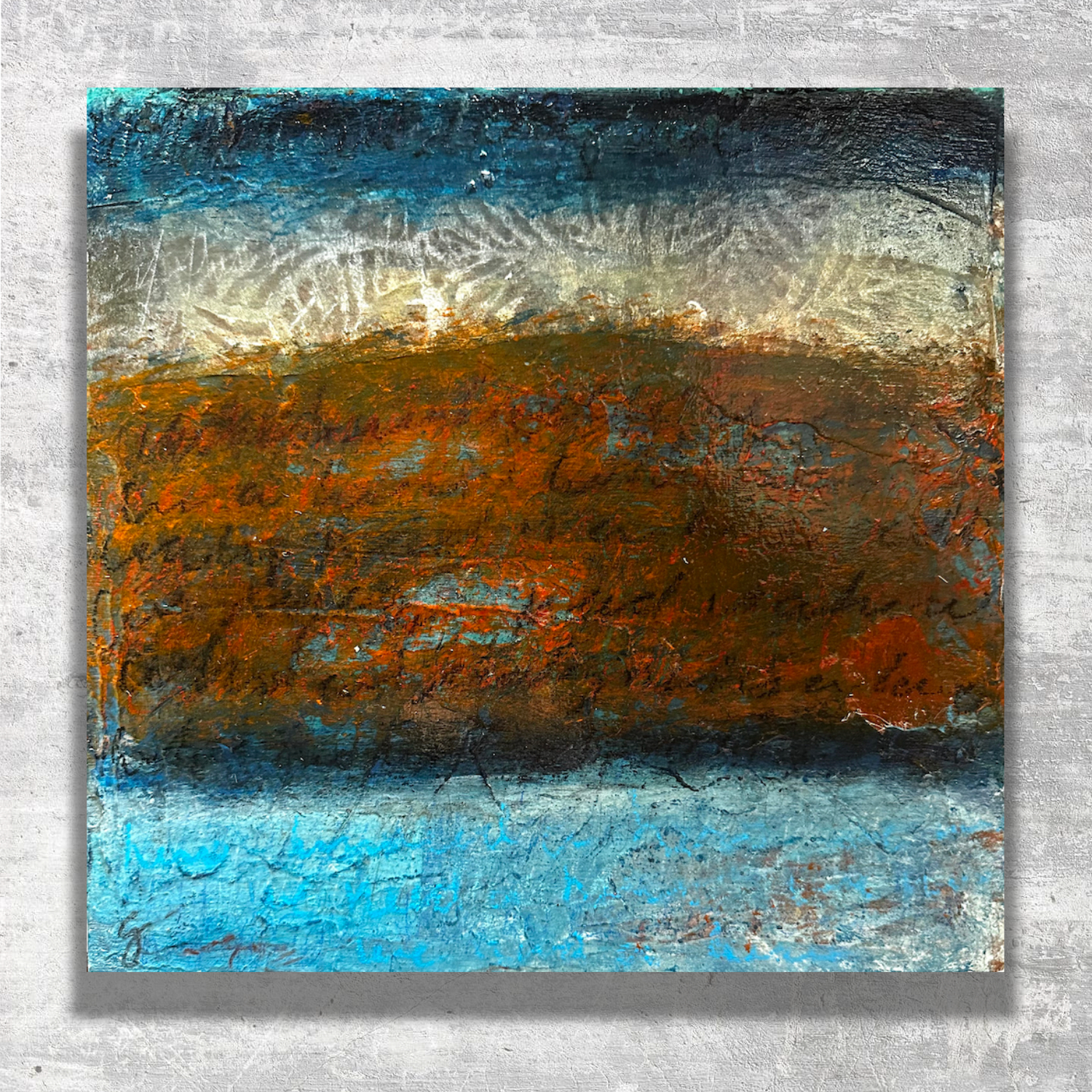 Built in the language of Color Plane painting, and influenced by artists like Mark Rothko and Martha Meyers, this piece moves beyond atmosphere into urgency. The layered bands and distressed surface hold tension—something unsettled, unresolved.